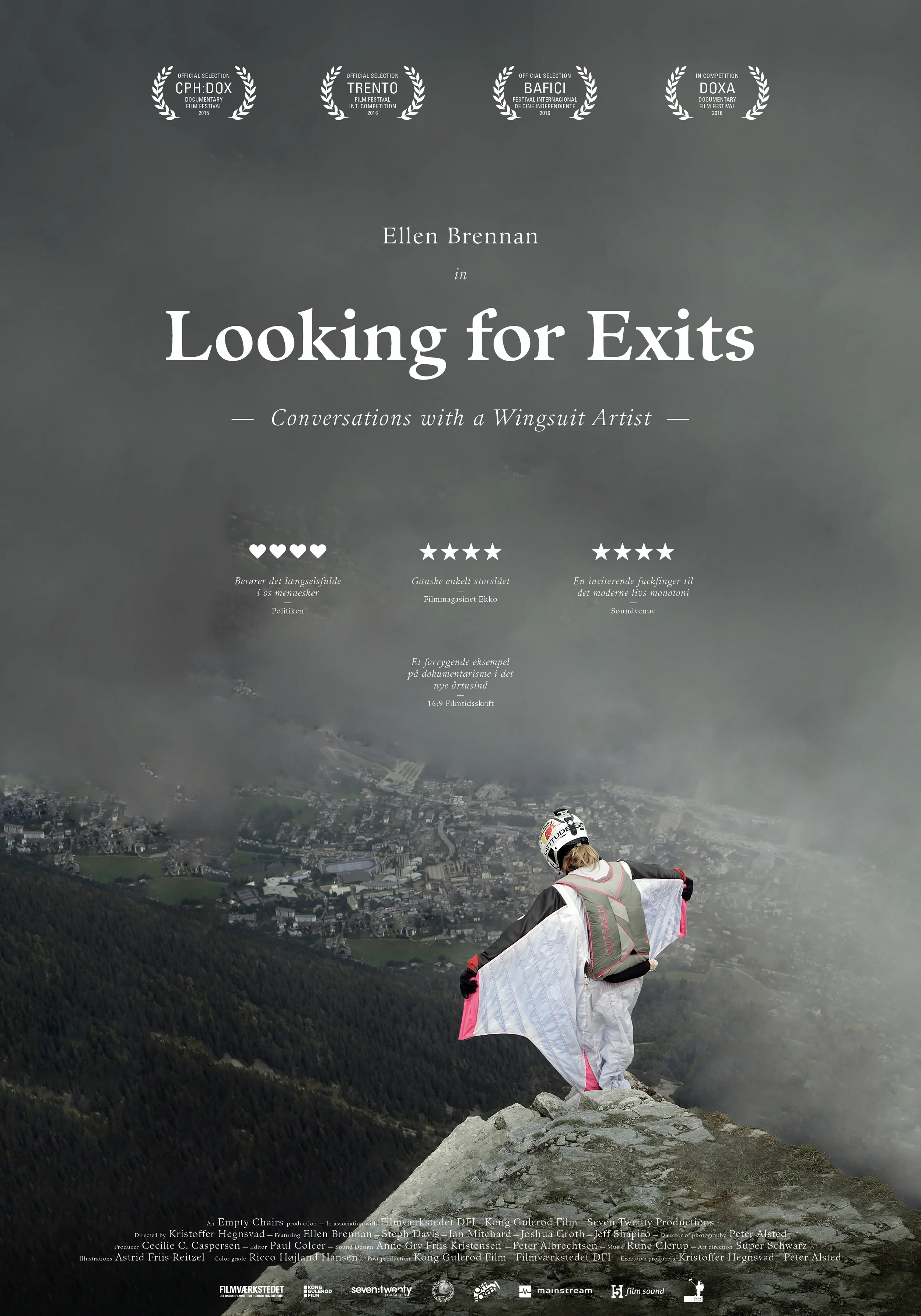Wingsuit basejumping is an extreme sport in which the pilot jumps from high peaks often above cloud level, navigating their way back to earth through forests and past cliff faces at speeds up to 240 kph. 'Looking for Exits - Conversations with a Wingsuit Artist' is a contemplative film; combining stunning photography with a podcast-inspired conversation with Ellen Brennan who is known within the wingsuit-community as a true artist. She's the fastest flying woman in the world, residing amongst the mountains in Chamonix Mont-Blanc she spends her days and sometimes nights looking for suitable cliffs from which she can soar. Ellen refer to these suitable cliffs as 'exits'.